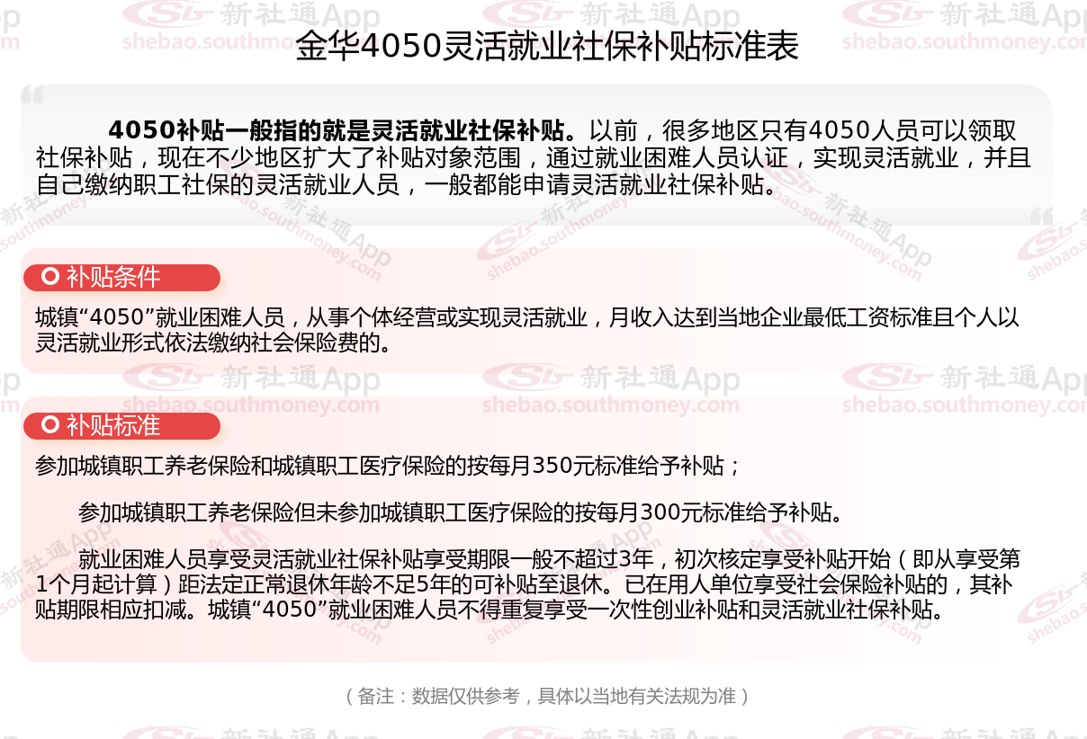 一、2025年金华灵活就业4050社保补贴标准是多少?申请条件是什么?