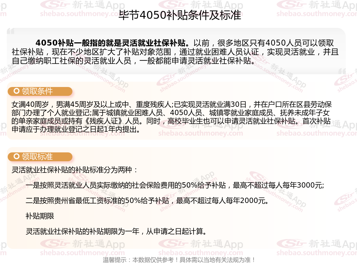 一、2023-2024年毕节4050社保补贴标准及条件是多少?