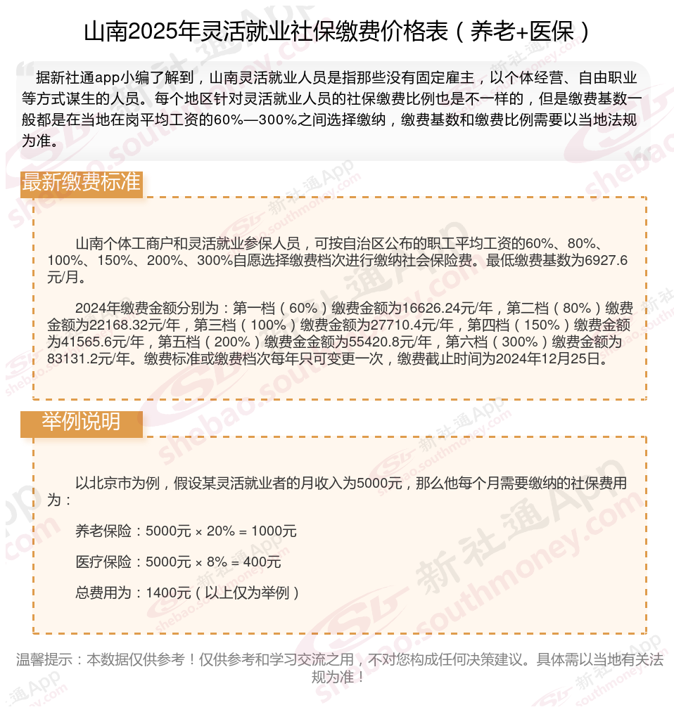 二、山南2025年灵活就业社保缴费基数及比例最新消息