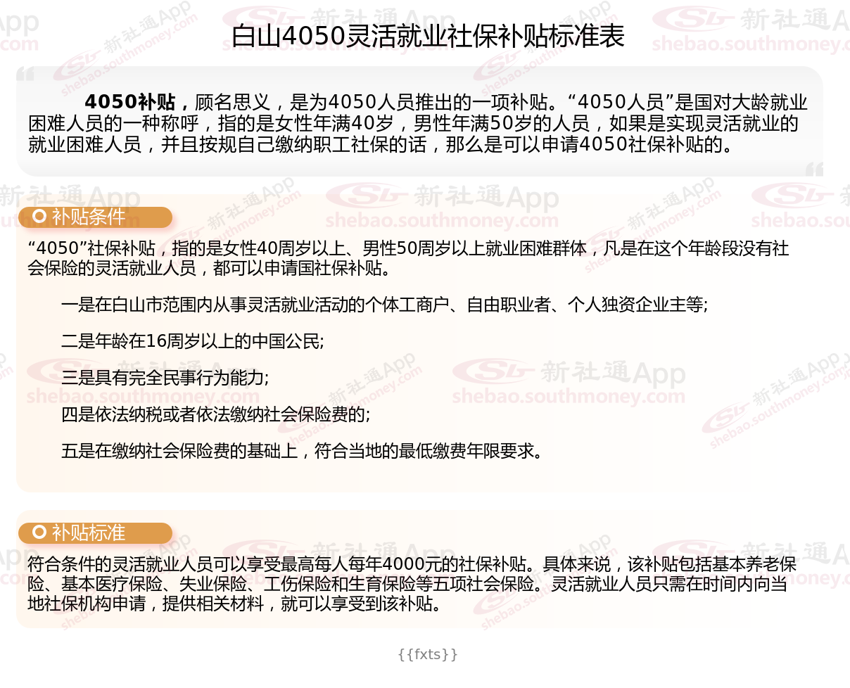 2025白山灵活就业4050社保补贴是一项面向特定年龄段的就业困难人群的社会保险补贴。