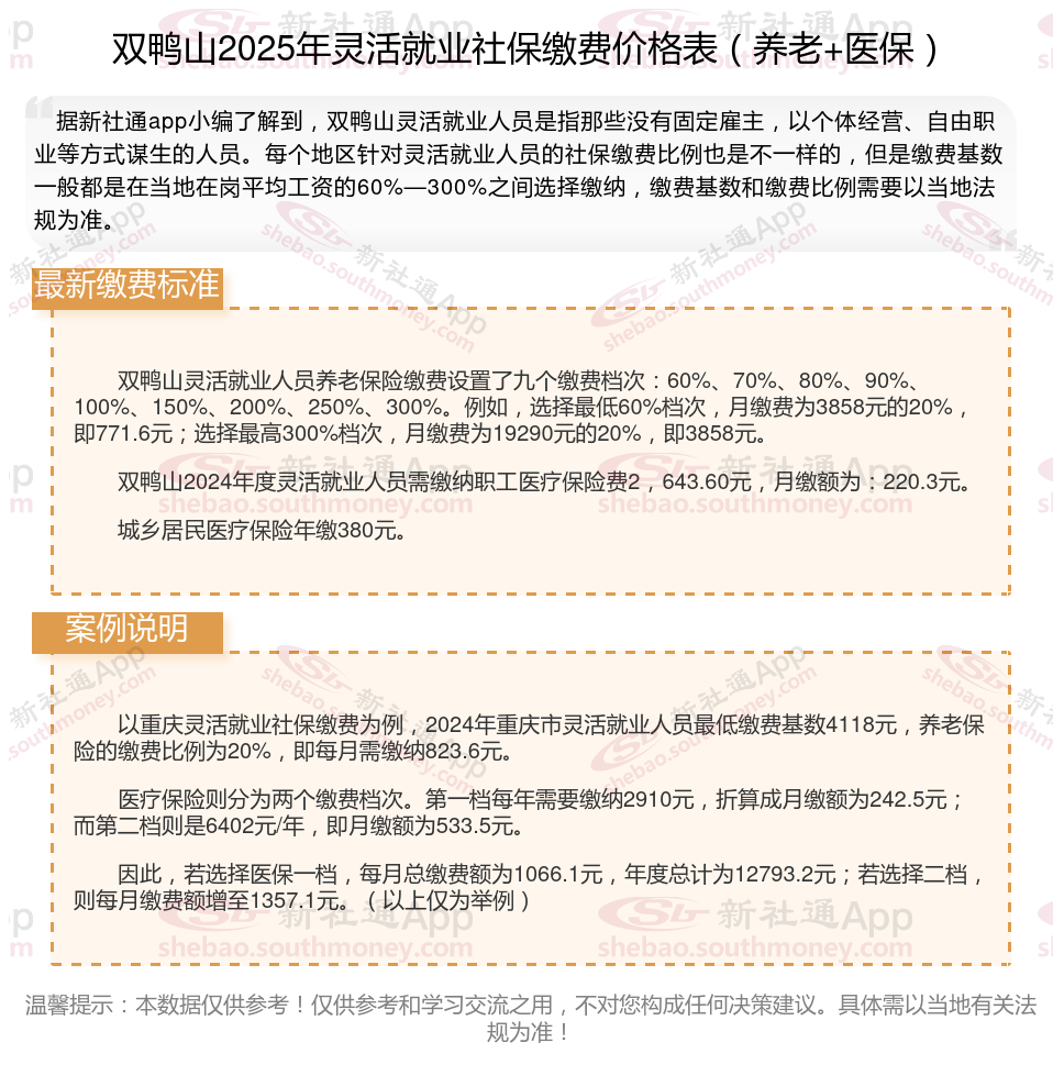 二、双鸭山2025年灵活就业社保缴费基数及比例最新消息
