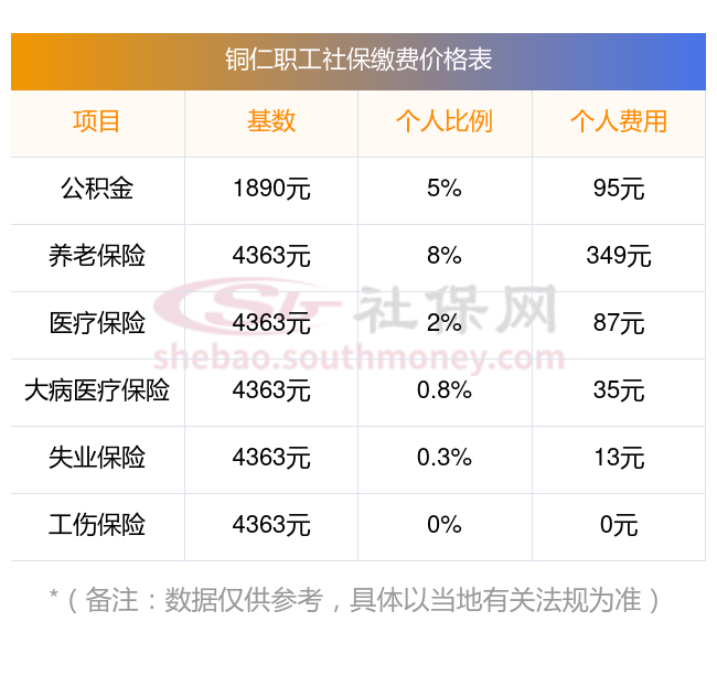 2025社保交多少钱?下表是2025年铜仁社保费用明细参考,新社通app-社保缴费查询工具提供的最新数据如下: