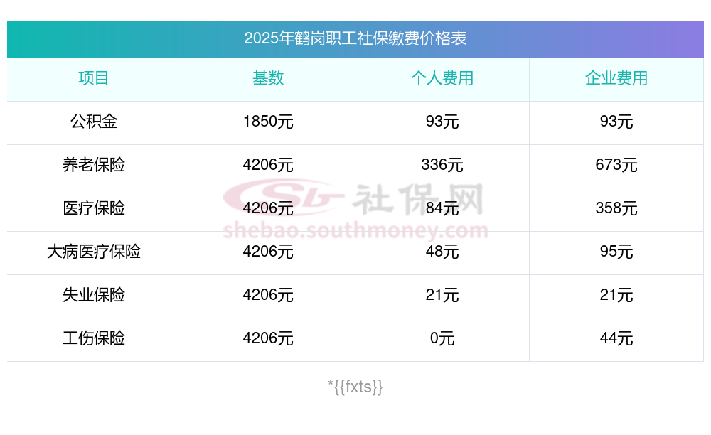 工伤保险:工伤保险费用由用人单位全额缴纳,职工个人无需缴纳。通常,单位的缴纳比例为1%。