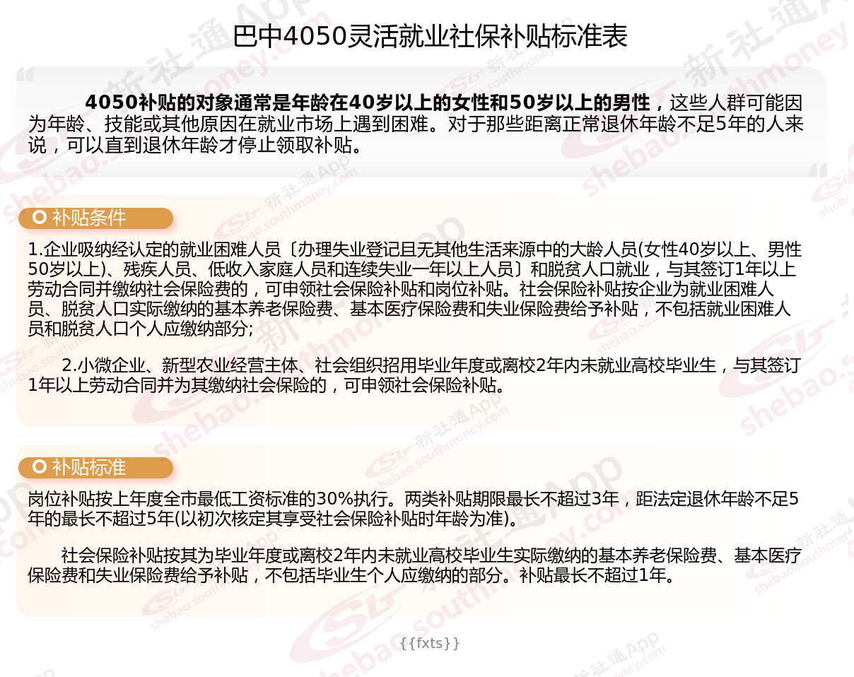 以上就是巴中4050灵活就业社保补贴的相关内容,欢迎关注新社通/下载新社通APP了解更多五险一金专业资讯。