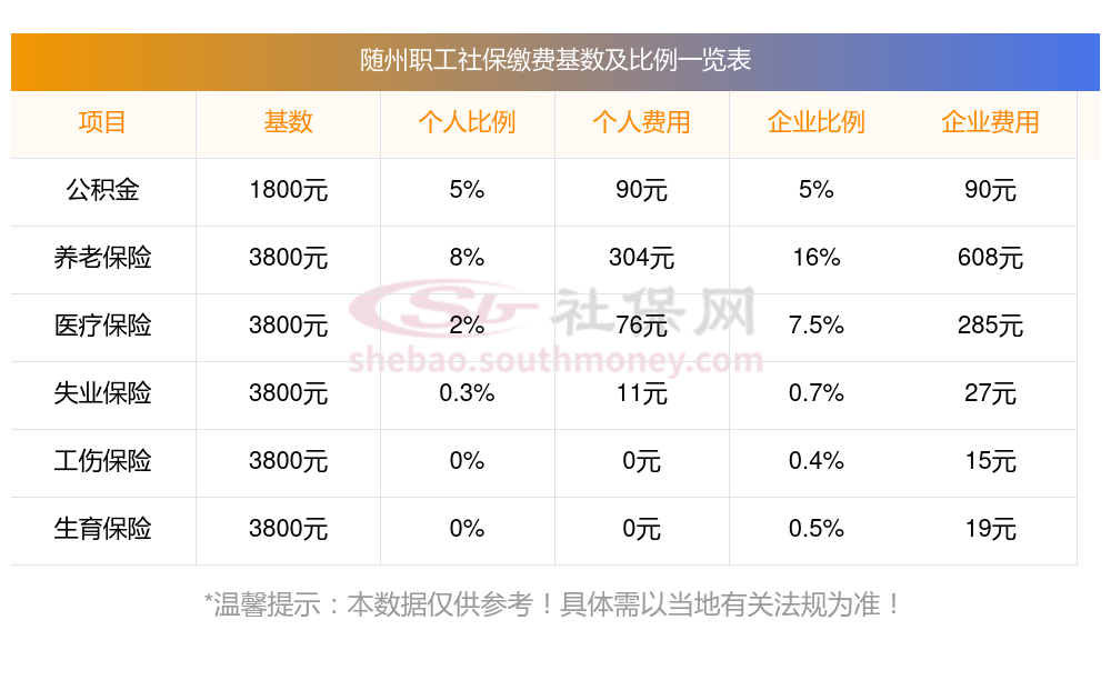 2025年随州五险缴费标准是多少,2025年随州社保缴费多少钱?下表是2025年随州社保费用明细参考,新社通app-社保缴费查询工具提供的最新数据如下: