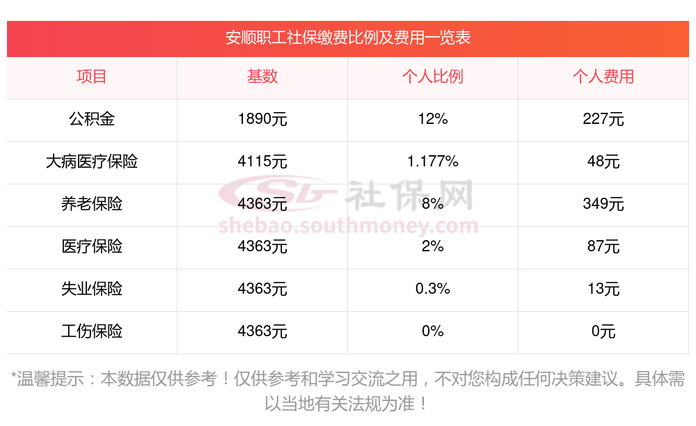 2025社保交多少钱?下表是2025年安顺社保费用明细参考,新社通app-社保缴费查询工具提供的最新数据如下: