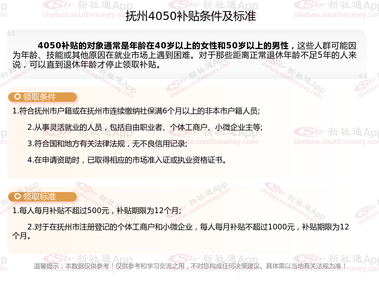 2025抚州4050补贴主要针对的是年龄在40岁以上的女性和50岁以上的男性,这些人群通常因为年龄较大而面临就业困难。