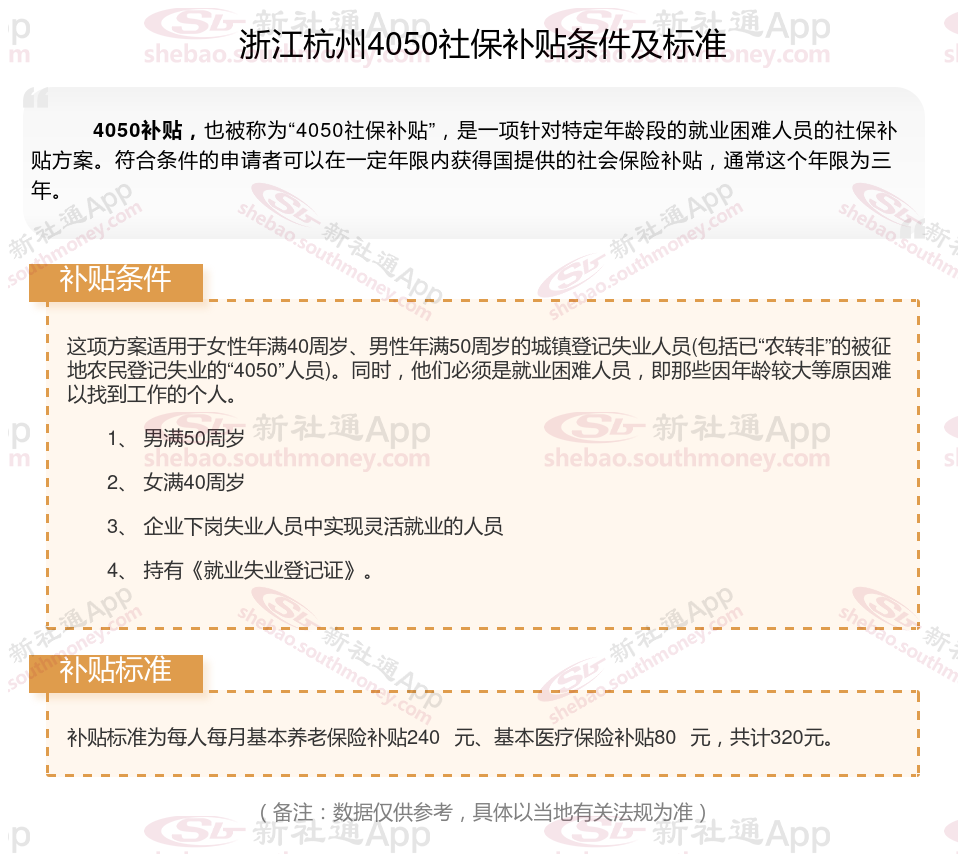 2025浙江杭州灵活就业4050社保补贴是一项面向特定年龄段的就业困难人群的社会保险补贴。
