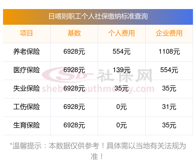 根据新社通app-社保缴费查询工具提供的最新数据,日喀则地区2025年的社保缴费标准已经确定。以下是各项保险的缴费比例及相应金额(基于一定的缴费基数)的详细说明:
