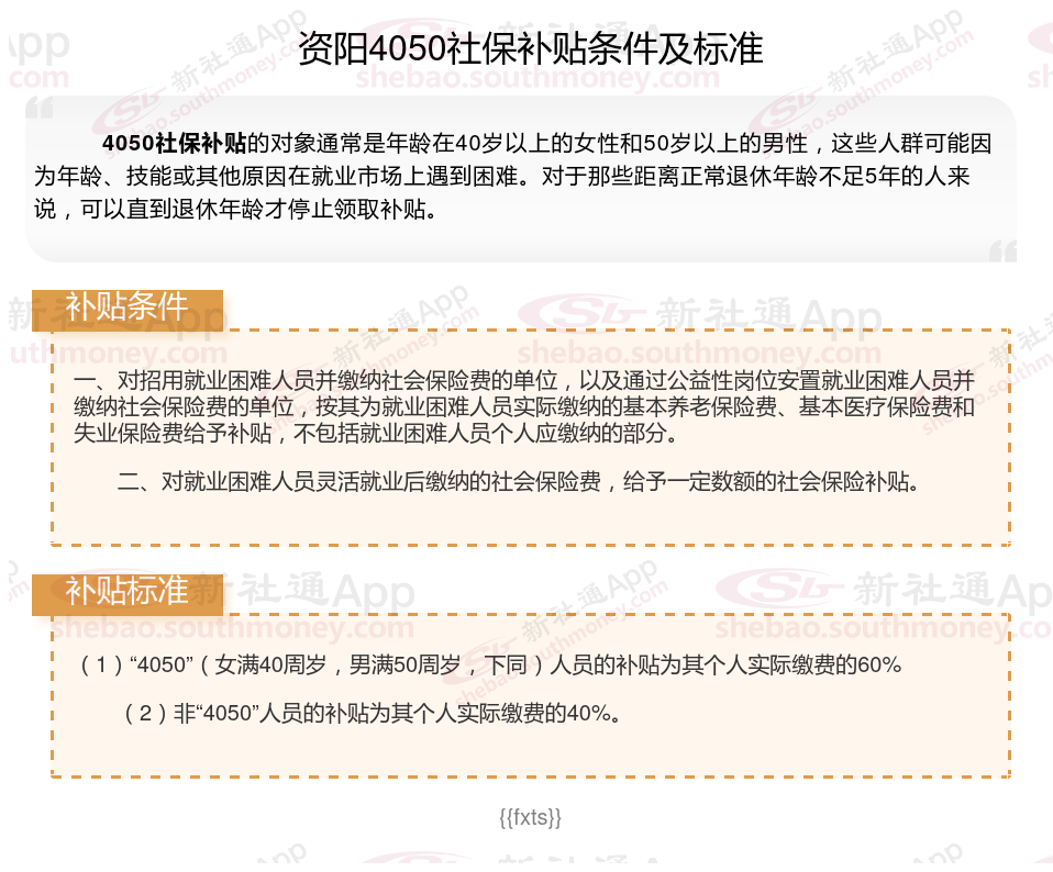 二、资阳4050社保补贴标准及条件(2025年最新)