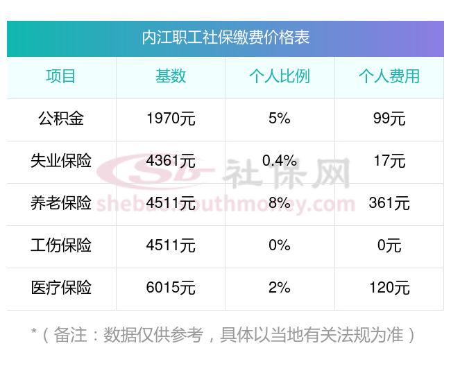 内江社保缴纳比例公司和个人按照以下方式计算?: