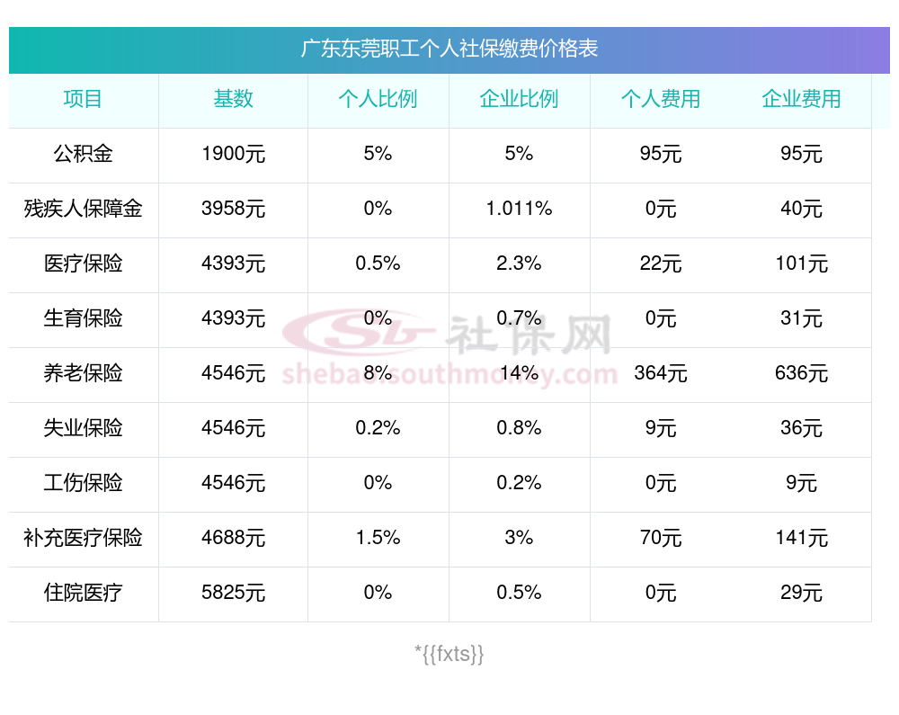广东东莞五险最少要交多少钱一个月多少钱?下表是2024-2025年广东东莞社保费用明细参考,新社通app-社保缴费查询工具提供的最新数据如下: