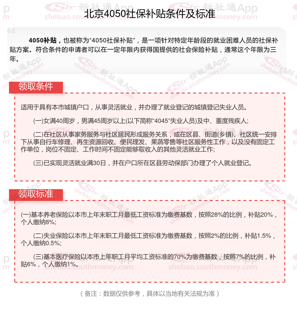 二、北京4050社保补贴标准及条件2025年,最新如下