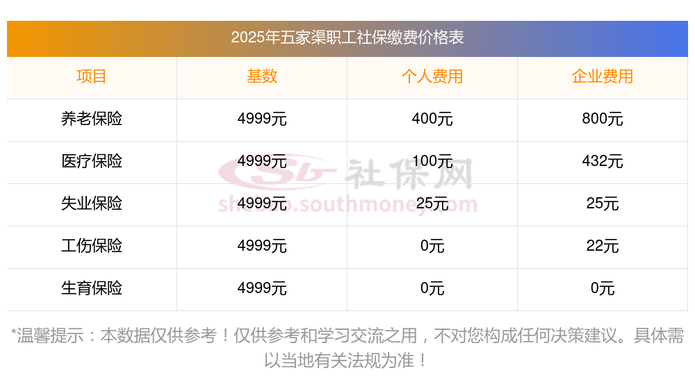 2025年五家渠五险缴费标准是多少,2025年五家渠社保缴费多少钱?下表是2025年五家渠社保费用明细参考,新社通app-社保缴费查询工具提供的最新数据如下: