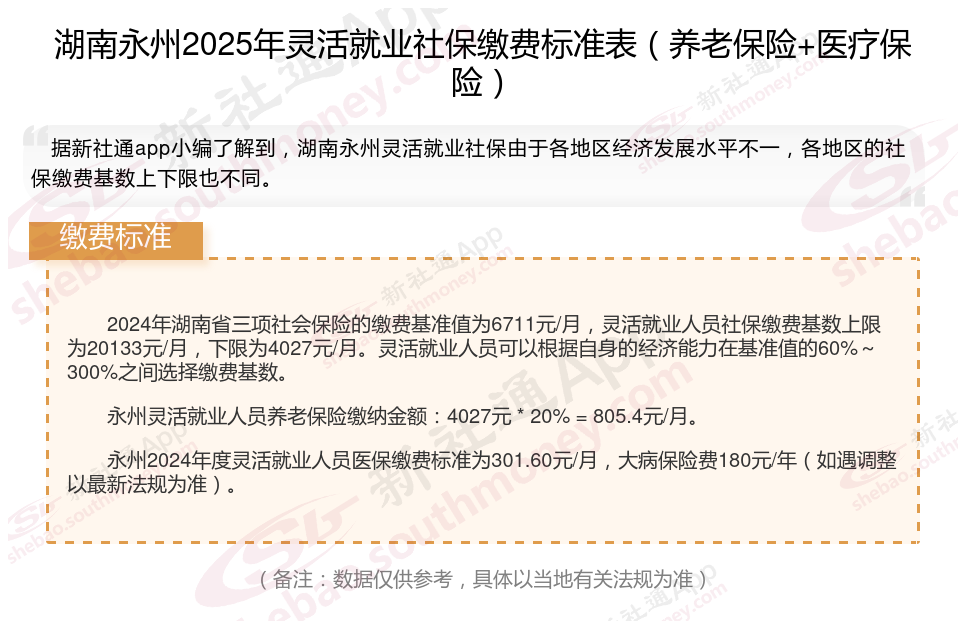 灵活就业者缴纳社保比例是多少?一般需要交多少钱一个月?根据新社通app-社保缴费查询工具提供的2025社保缴费标准详情数据:
