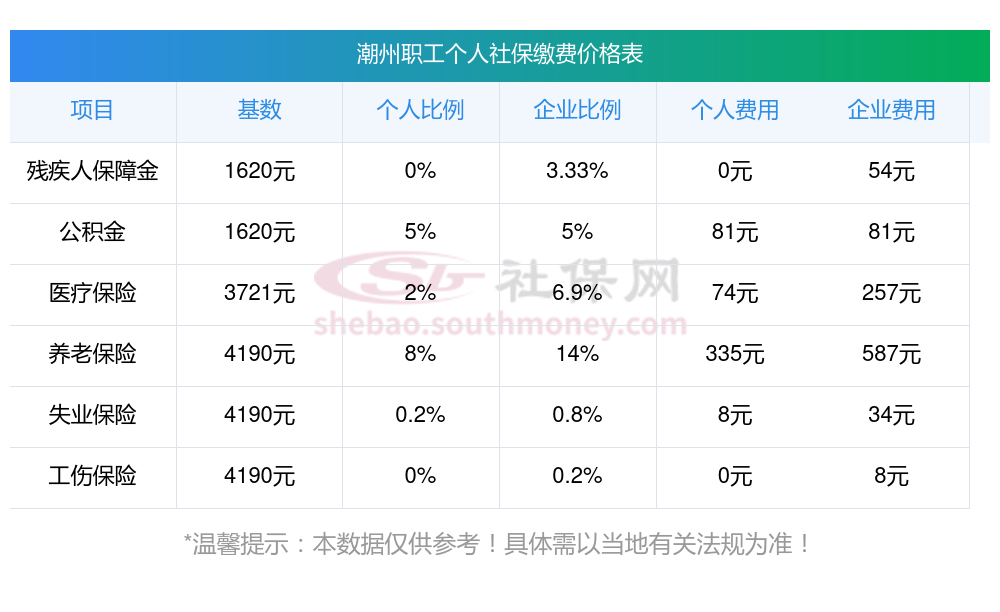 2025年潮州社保缴费多少钱?下表是2024-2025年潮州社保费用明细参考,新社通app-社保缴费查询工具提供的最新数据如下:
