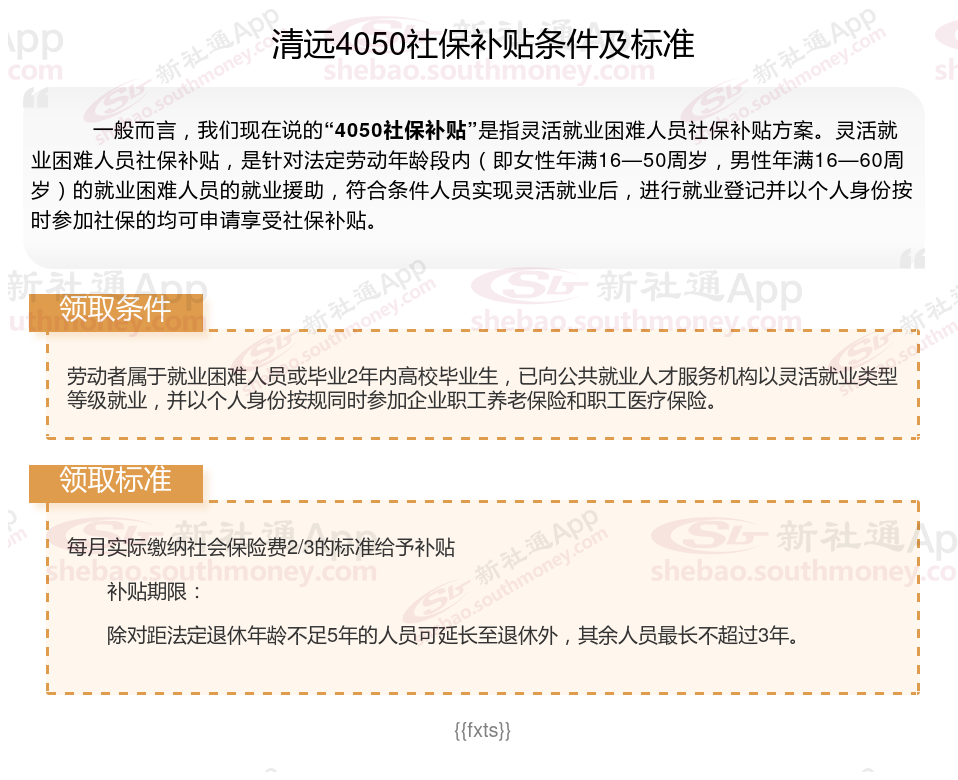 一、2025年清远灵活就业4050社保补贴标准及条件是什么(灵活就业4050社保补贴多少钱)