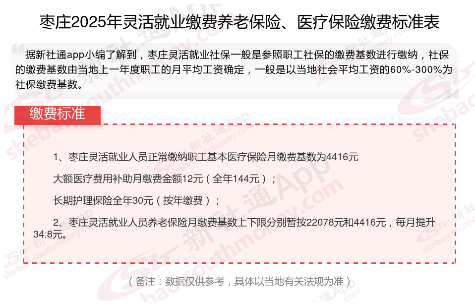 一、2025年枣庄灵活就业社保缴费标准公布啦 枣庄灵活就业社保多少钱一个月?