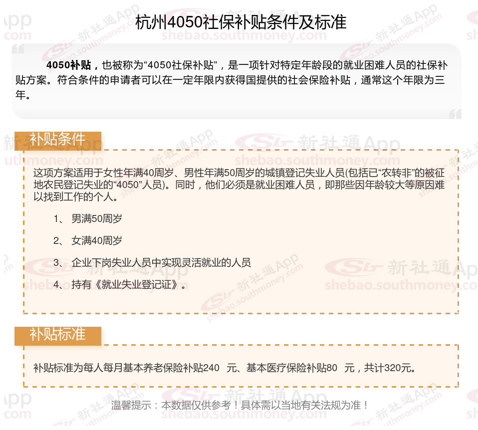 二、2025年杭州4050社保补贴标准(杭州4050灵活就业人员补贴标准是多少钱?杭州2025年4050补贴新规能领多少钱?)