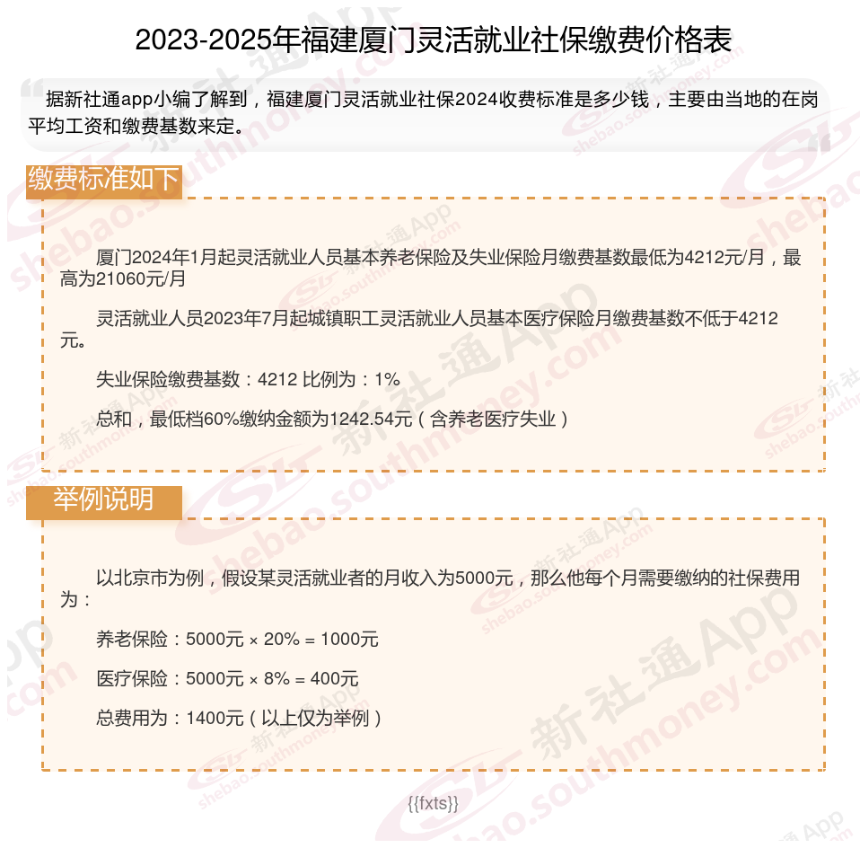 福建厦门灵活就业人员的社保缴费标准是多少?根据新社通app-社保缴费查询工具提供的最新数据如下: