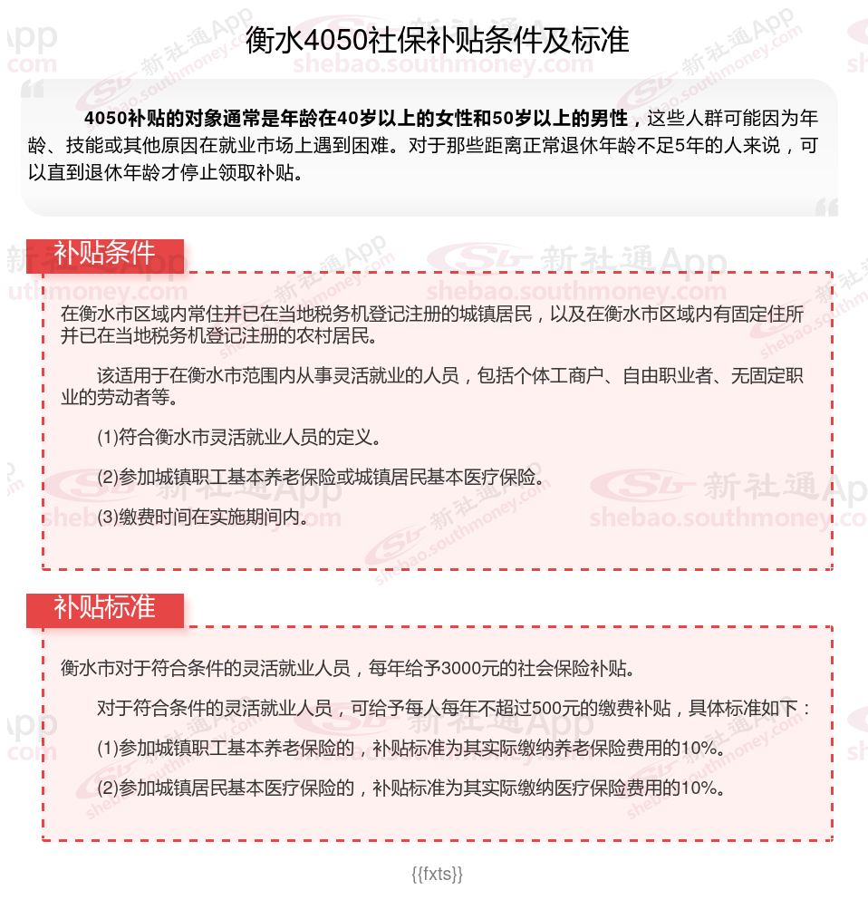 一、2025年衡水灵活就业4050社保补贴标准最新是多少?