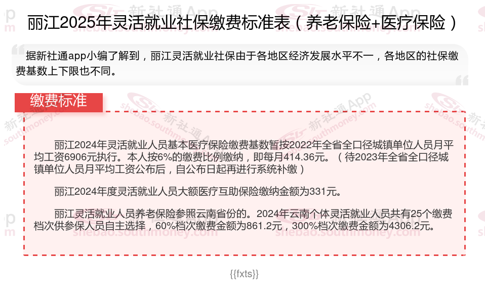 据新社通app数据显示,丽江企业灵活就业养老保险的缴费基数为:4306.2元。