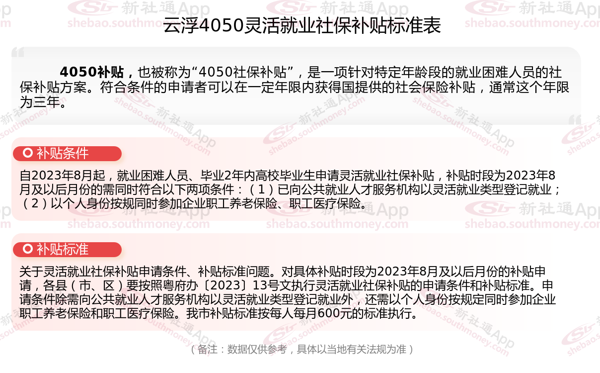 一、2023-2024年云浮4050社保补贴标准及条件,最新如下