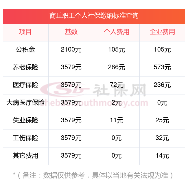 2025年社保缴费价目表,下面和社保小编一起来了解下2024-2025年商丘最低配社保费用明细参考,新社通app-社保缴费查询工具提供的最新数据如下: