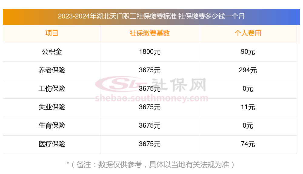 2025年湖北天门社保缴费多少钱?下表是2023-2024年湖北天门社保费用明细参考,如下: