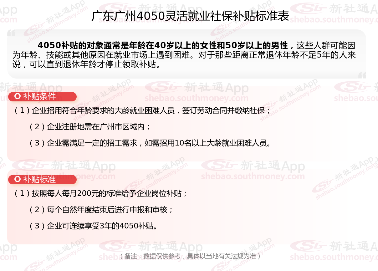 二、广东广州4050社保补贴标准及条件2025年最新消息