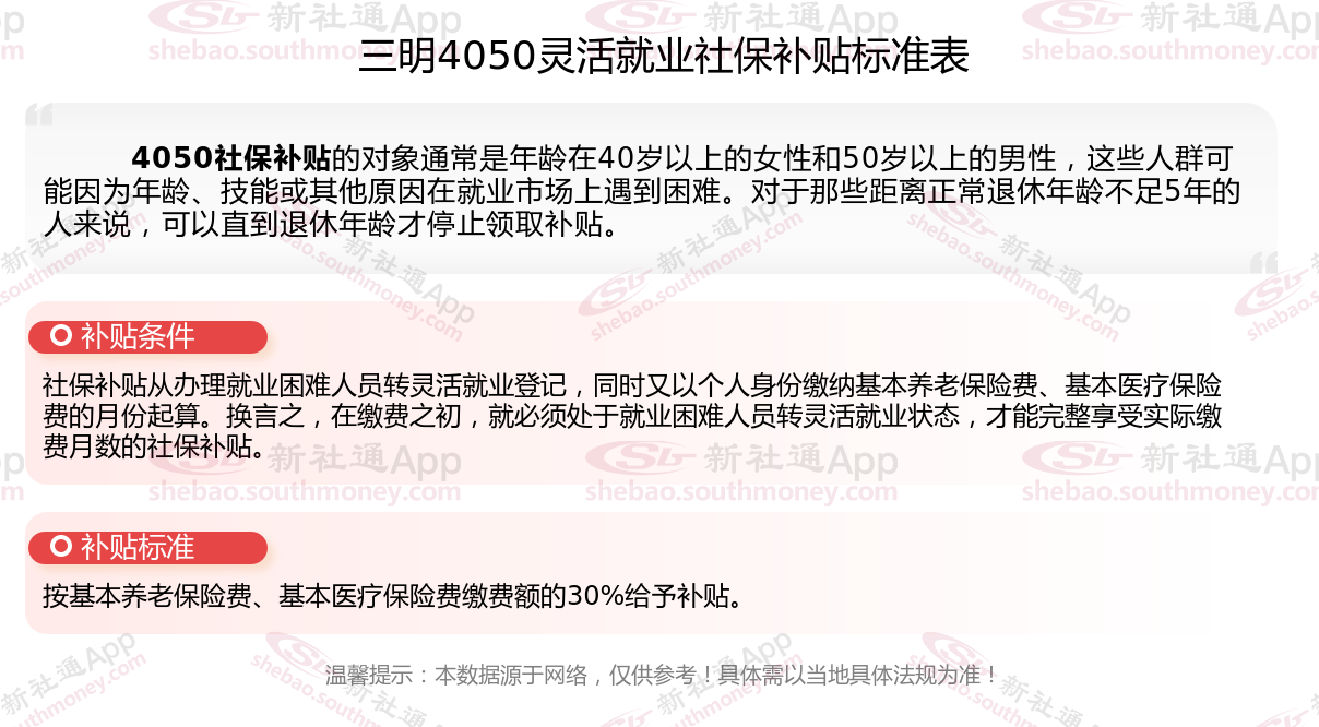 二、三明4050社保补贴多少钱一个月?三明4050社保补贴2025年最新标准是多少?
