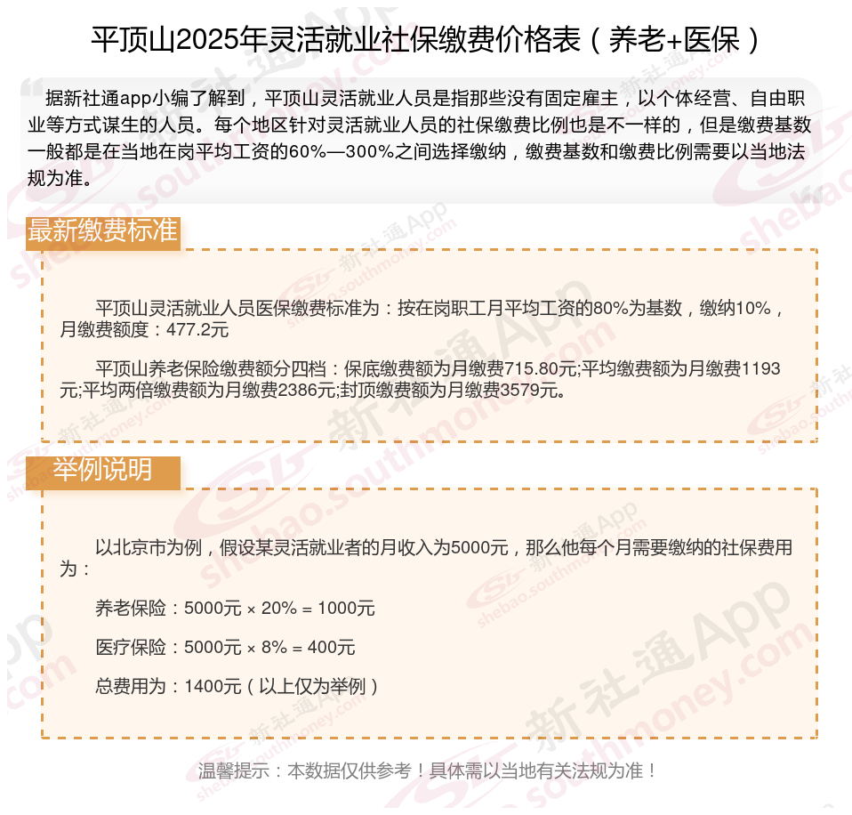一、2025年平顶山灵活就业人员社保养老+医保缴费标准一年多少钱?