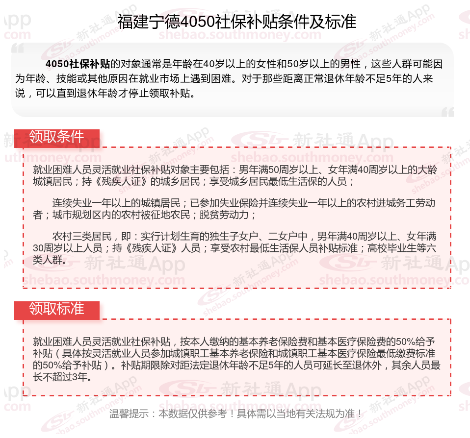 二、2025年福建宁德4050社保补贴标准及条件