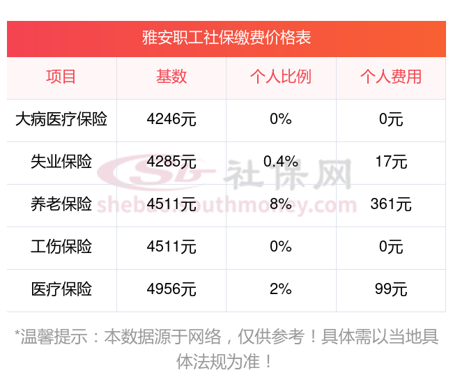 雅安社保个人缴费比例是多少?和新社通小编一起来看看2024-2025年雅安最低社保费用明细参考,新社通app-社保缴费查询工具提供的最新数据如下: