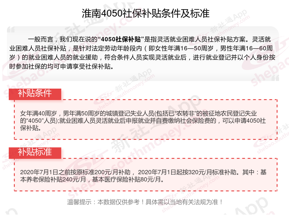 一、2025年淮南灵活就业4050社保补贴标准及条件是什么