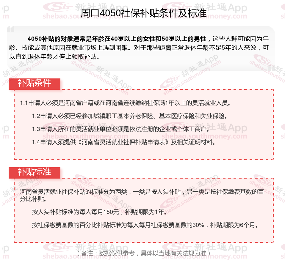 二、周口4050社保补贴标准及条件2025年,最新如下