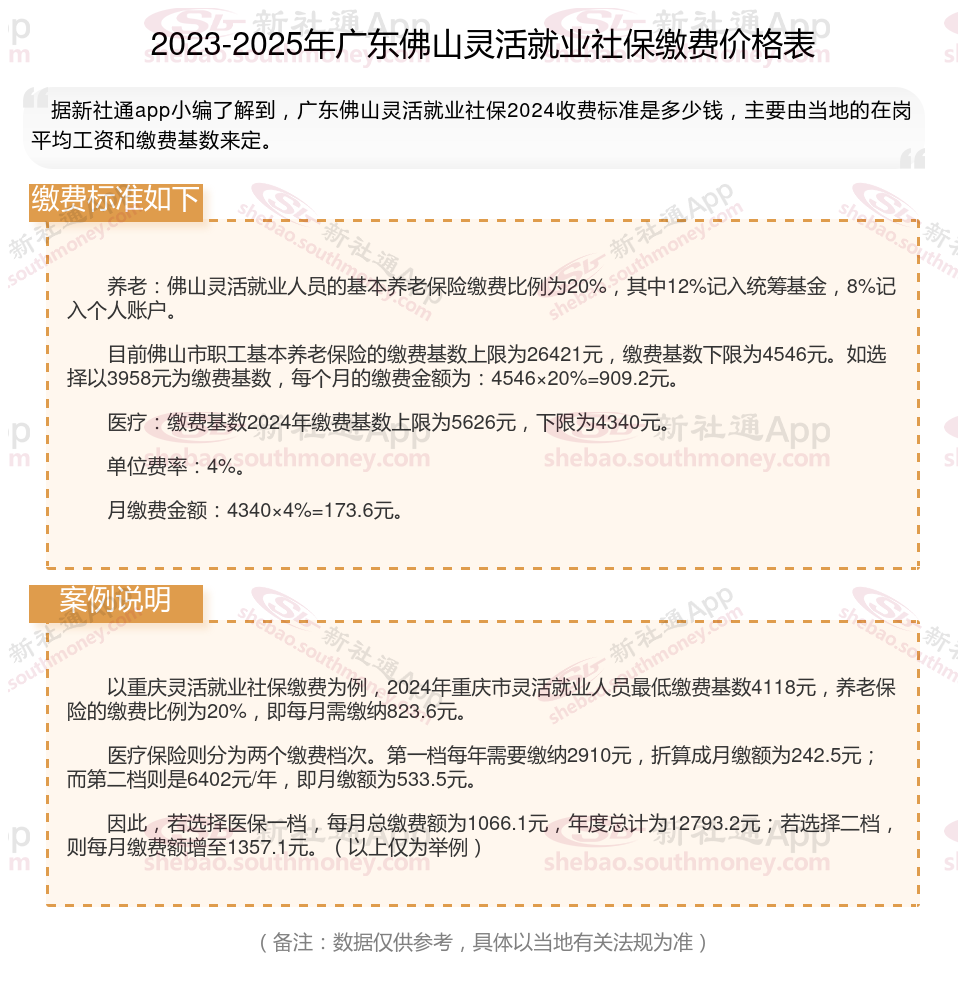 一、2025年广东佛山灵活就业社保缴费标准公布啦 广东佛山灵活就业社保多少钱一个月?