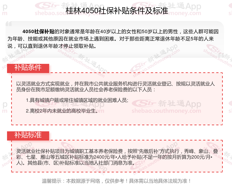 以上就是桂林4050灵活就业社保补贴的相关内容,欢迎关注新社通/下载新社通APP了解更多五险一金专业资讯。