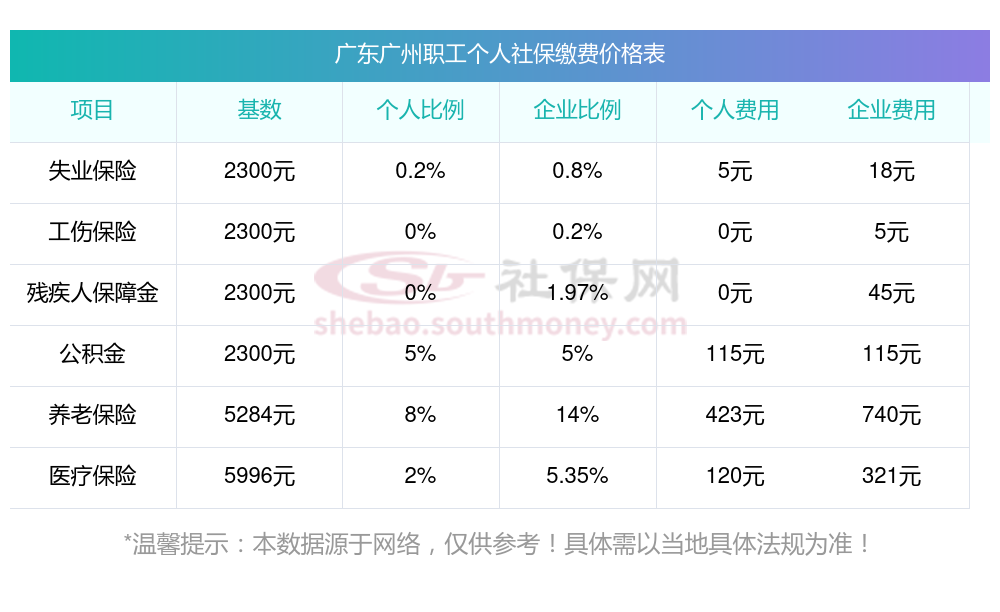 2025年广东广州5险缴费标准是多少,2025年广东广州社保缴费多少钱?下表是2025年广东广州社保费用明细参考,新社通app-社保缴费查询工具提供的最新数据如下: