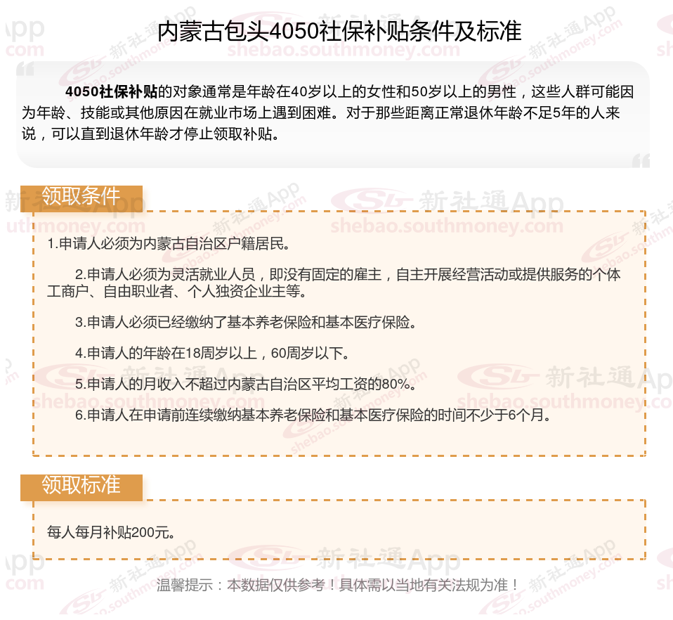 二、内蒙古包头4050社保补贴标准及条件4050社保补贴,最新如下