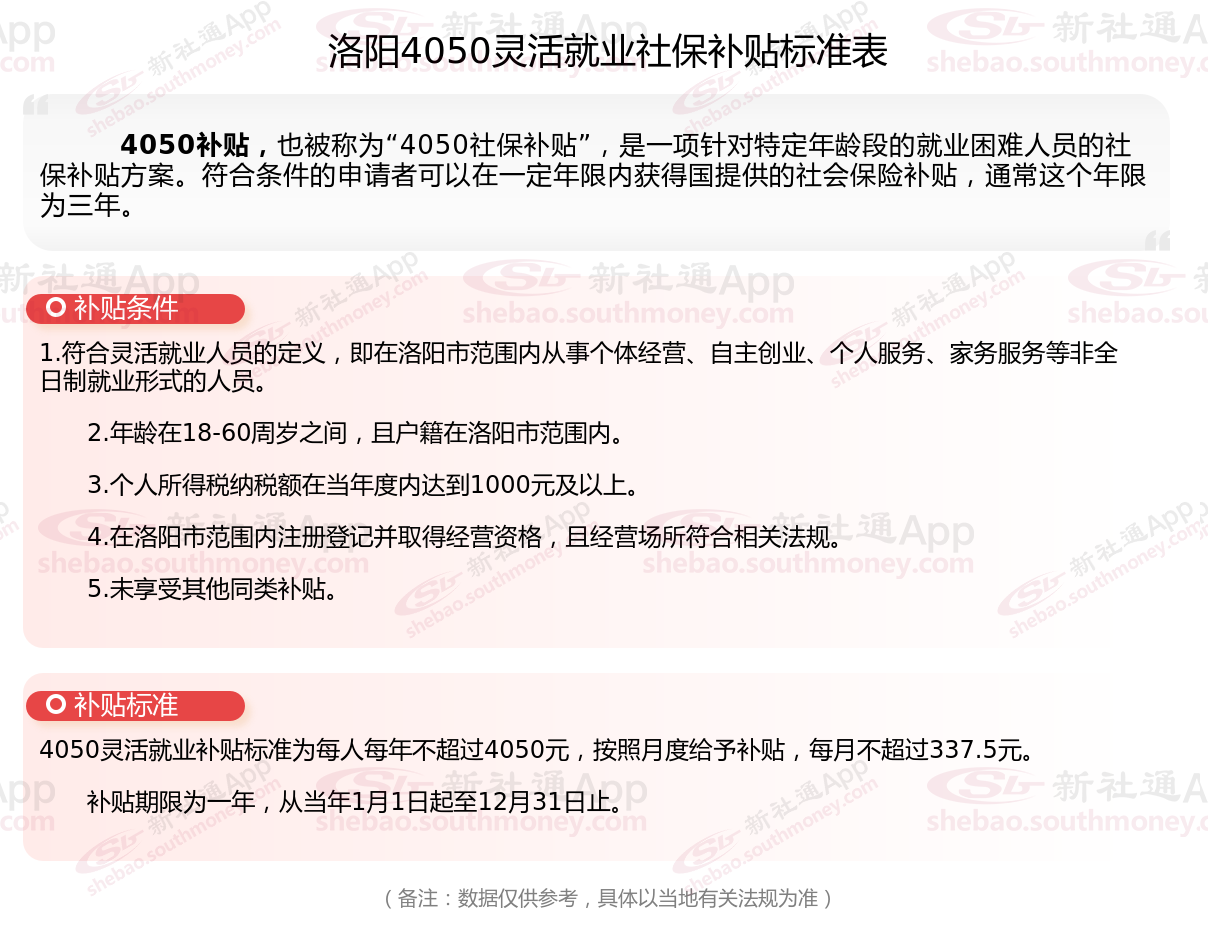 一、洛阳4050社保补贴标准及条件2025年最新消息
