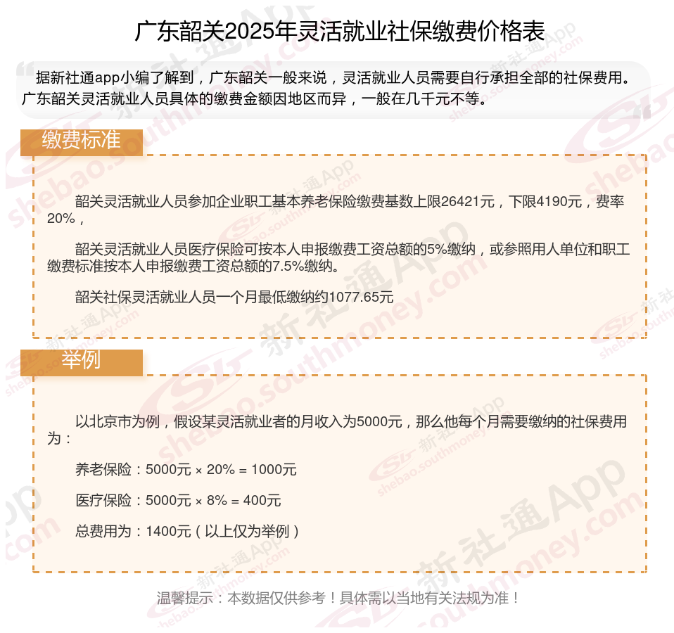 以上就是带来广东韶关灵活就业社保缴费标准相关知识,内容供参考,希望对你有帮助,欢迎关注/下载新社通APP解锁更多社保专业资讯。
