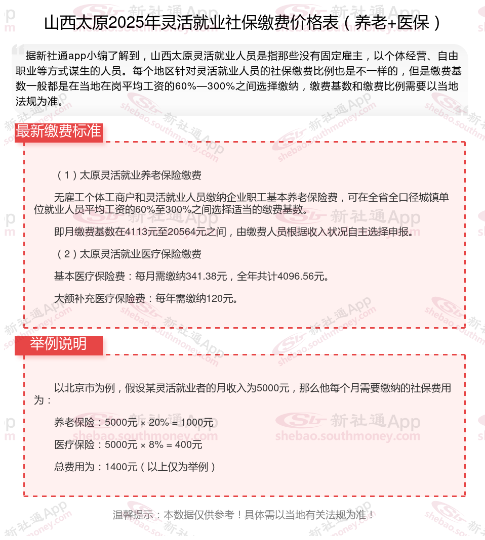 一、2025年山西太原灵活就业社保缴费标准公布啦 山西太原灵活就业社保多少钱一个月?