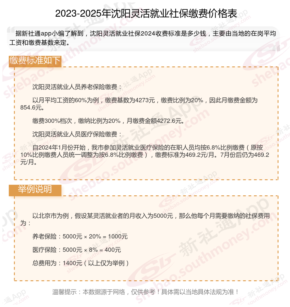 据新社通app数据显示,沈阳灵活就业人员养老缴费基数2024-2025年最新标准如下: