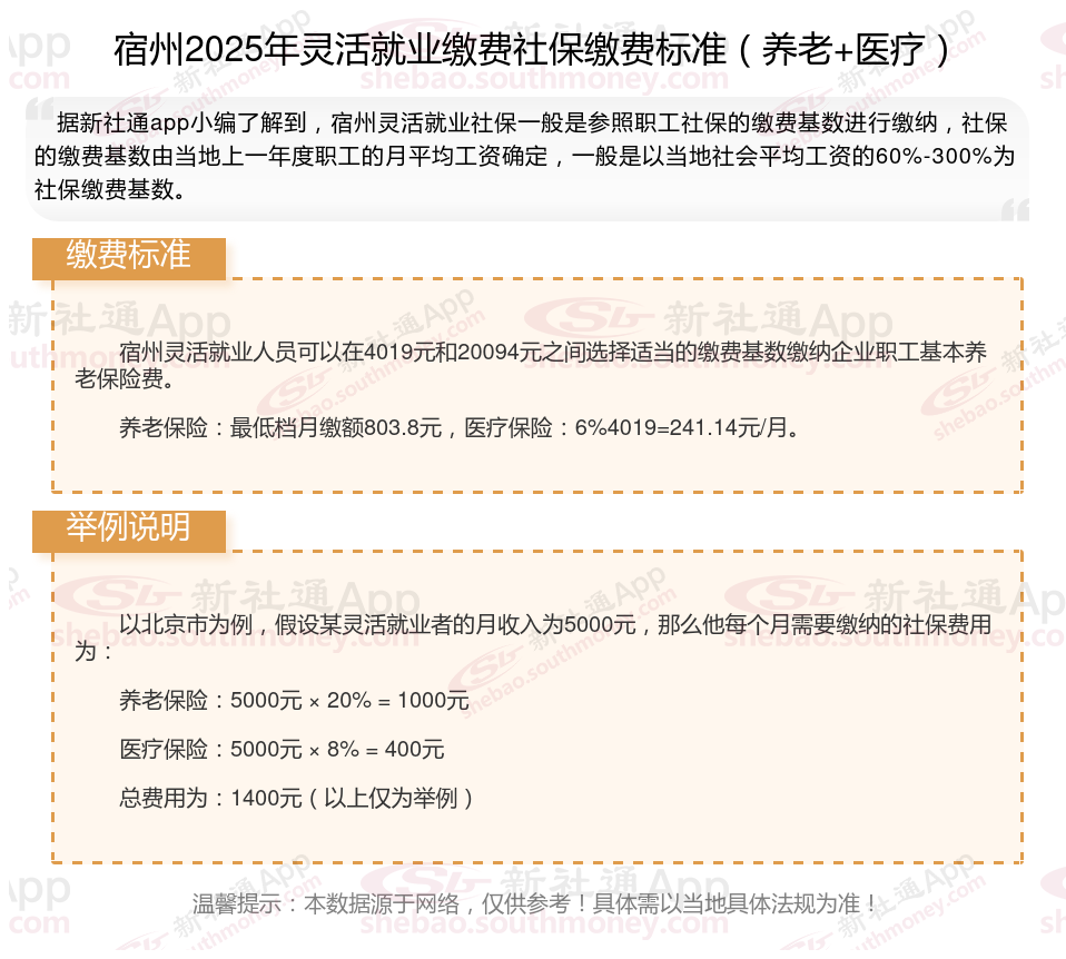 二、宿州2025年灵活就业社保缴费基数及比例最新消息