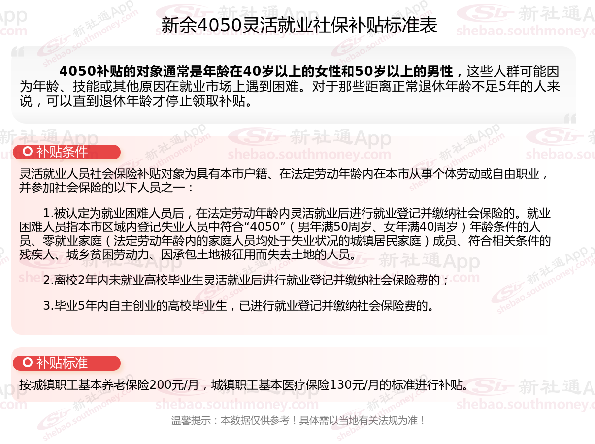 二、新余4050社保补贴标准及条件2025年,最新如下