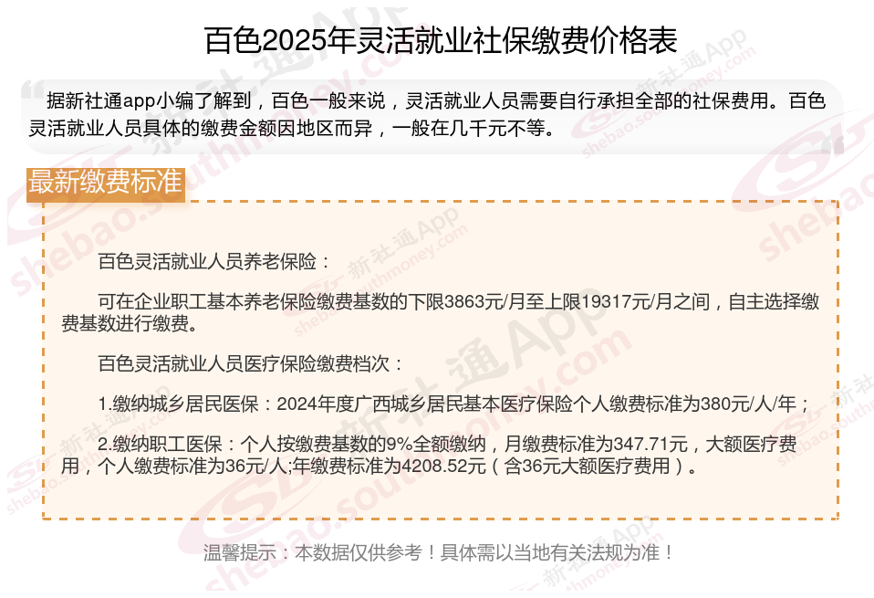 以上就是新社通小编带来百色灵活就业社保缴费知识,内容供参考,希望对你有帮助,欢迎关注/下载新社通APP解锁更多社保专业资讯。