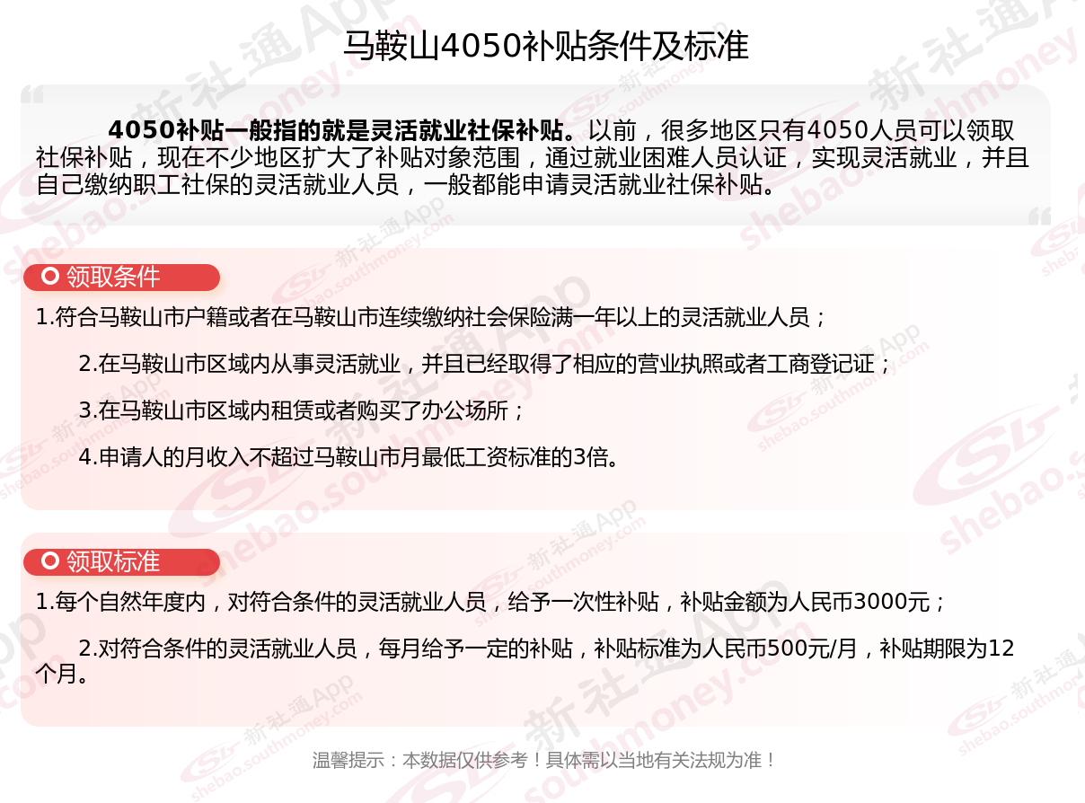二、2025年马鞍山4050社保补贴标准,最新领取条件来了