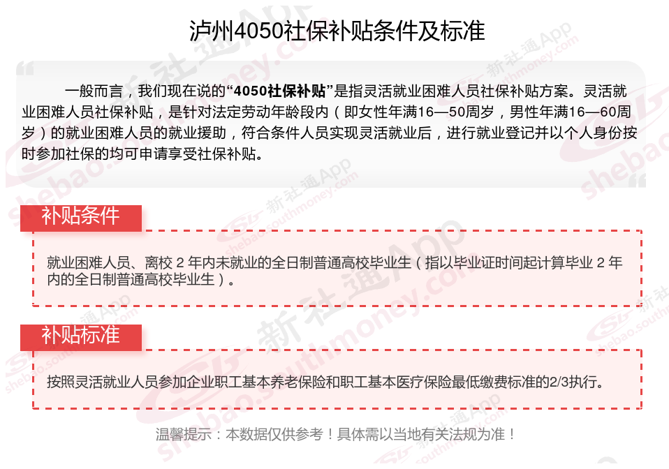 二、2025年泸州4050社保补贴标准(泸州4050灵活就业人员补贴标准是多少钱?泸州2025年4050补贴新规能领多少钱?)