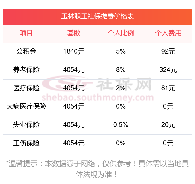 社保可以自己缴纳吗?玉林社保多少钱一个月?下面和新社-app一起来看看玉林最低标准社保费用明细参考,新社通app-社保缴费查询工具提供的最新数据如下: